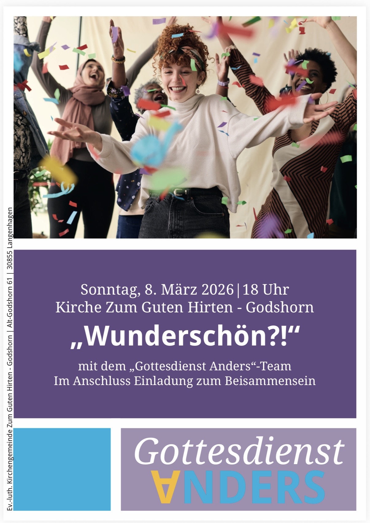 Am Sonntag, 8. März 2026 lädt das Gottesdienst Anders Team um 18 Uhr wieder zu einem besonderen Gottesdienst ein.