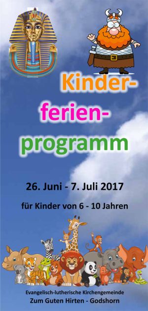 bald ist es wieder so weit. Die Sommer-ferien stehen vor der Tür und deshalb gibt es auch wieder ein buntes Ferienprogramm für euch. Wir laden euch zu 2 Wochen Spiel und Spaß ein. Auf dem Programm stehen Ausflüge, Kreativ-Aktionen und vieles mehr. Beginn ist wenn nicht anders angegeben in der Jugendscheune (Alt-Godshorn 61). Ihr könnt die ganze Zeit mitmachen oder euch zu einzelnen Angeboten anmelden. Die als Anlage beigefügte Anmeldung müssen eure Eltern bei „Satt & Schlau“ in der Jugendscheune Godshorn oder im Kirchenbüro abgeben. Mit der Anmeldung müssen auch die Teilnahmegebühren bezahlt werden. Eine Ermäßigung ist möglich.