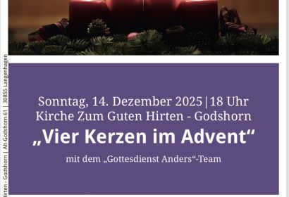 Am 14.12.25 lädt das Gottesdienst Anders Team um 18 Uhr zu einem besonderen Gottesdienst in unsere Kirche ein.