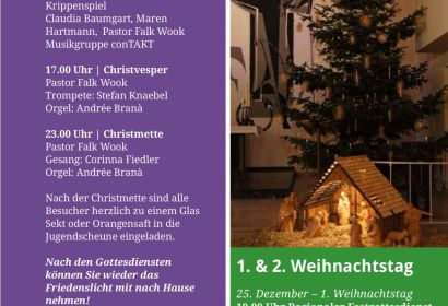 Zu unseren Gottesdiensten am Heiligen Abend & zu Weihnachten laden wir sie herzlich ein.