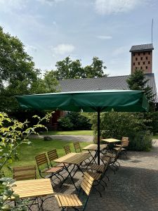 Auf dem Vorplatz zwischen Kirche und Gemeindehaus findet auch in diesem Jahr im Juli und August wieder das “Bistro am Turm” statt. Interessierte sind herzlich eingeladen, sich unter dem Sonnenschirm zu entspannen und miteinander auszutauschen. Wasser, Wein, Softdrinks und Knabbereien können dabei kostengünstig konsumiert werden. Bei Regen findet das Bistro in der Jugendscheune statt.
