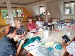 Dabei darf bei einer Tasse Kaffee oder Tee gemütlich geplaudert und nebenbei gestrickt, gehäkelt oder eine andere Handarbeit gemacht werden. Interessierte können gern ihre eigene Handarbeit mitbringen. Eine Anmeldung ist nicht erforderlich.